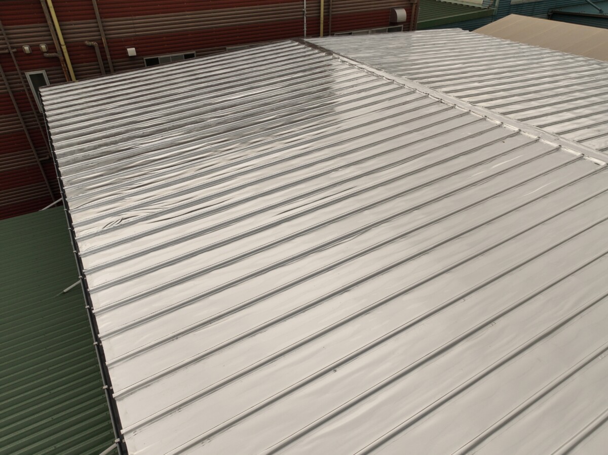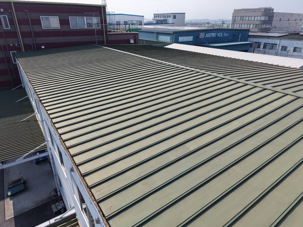 工場の折半屋根は直射日光で屋根材が高温になりやすく、その熱が室内に伝わって室温上昇を招きます。